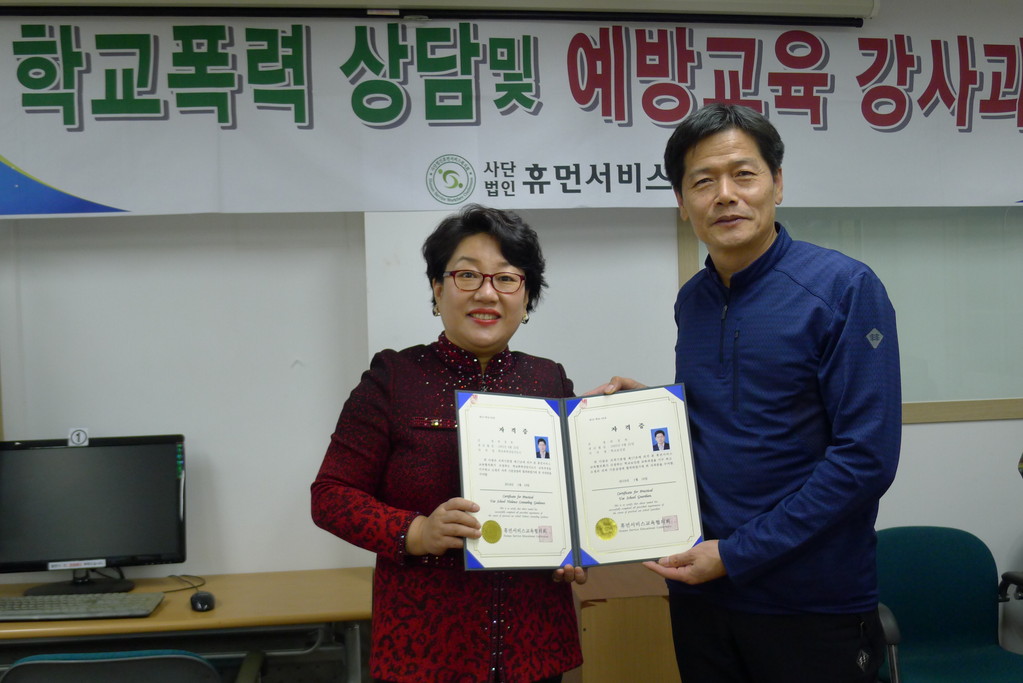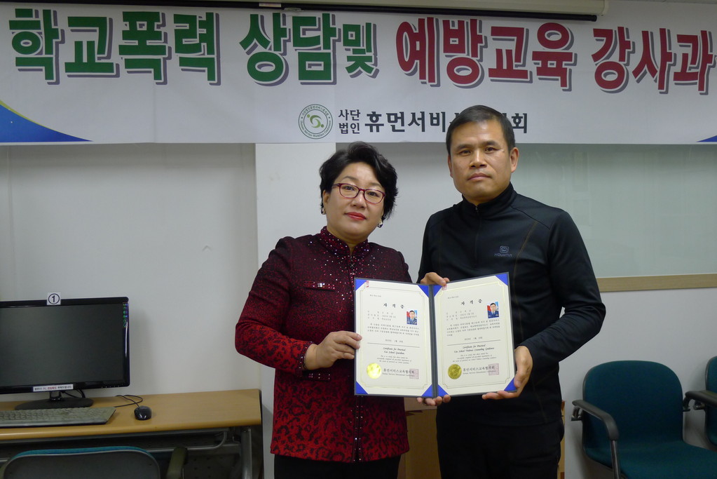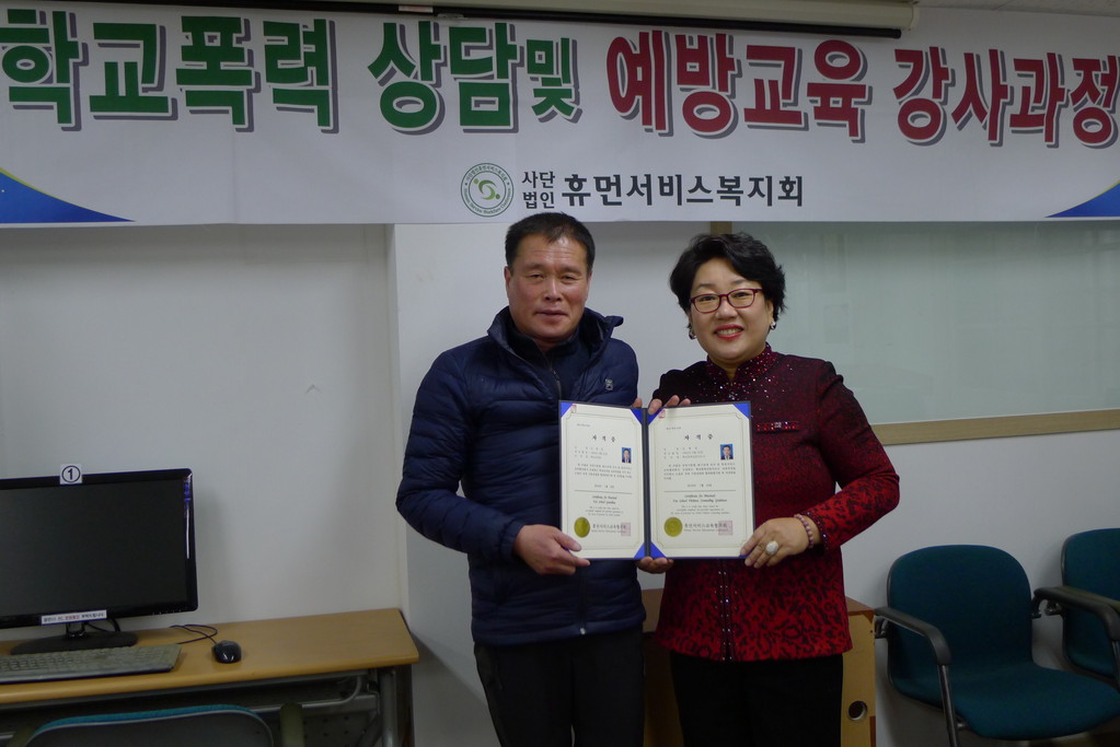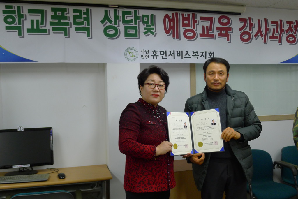 | » | 학교보안관 및 학교폭력예방상담사 교육 과정(2018.01.15-19) 수료 | 휴먼서비스교육협의회 | 2018.01.19 | 4296 | |||