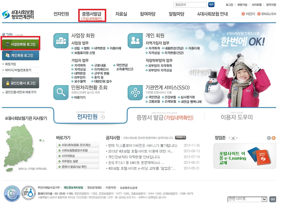 | » | 사대보험사업장가입자명부 및 건강보험자격득실확인서 출력요령 | (사)휴먼서비스복지회 | 2014.01.06 | 21201 | |||