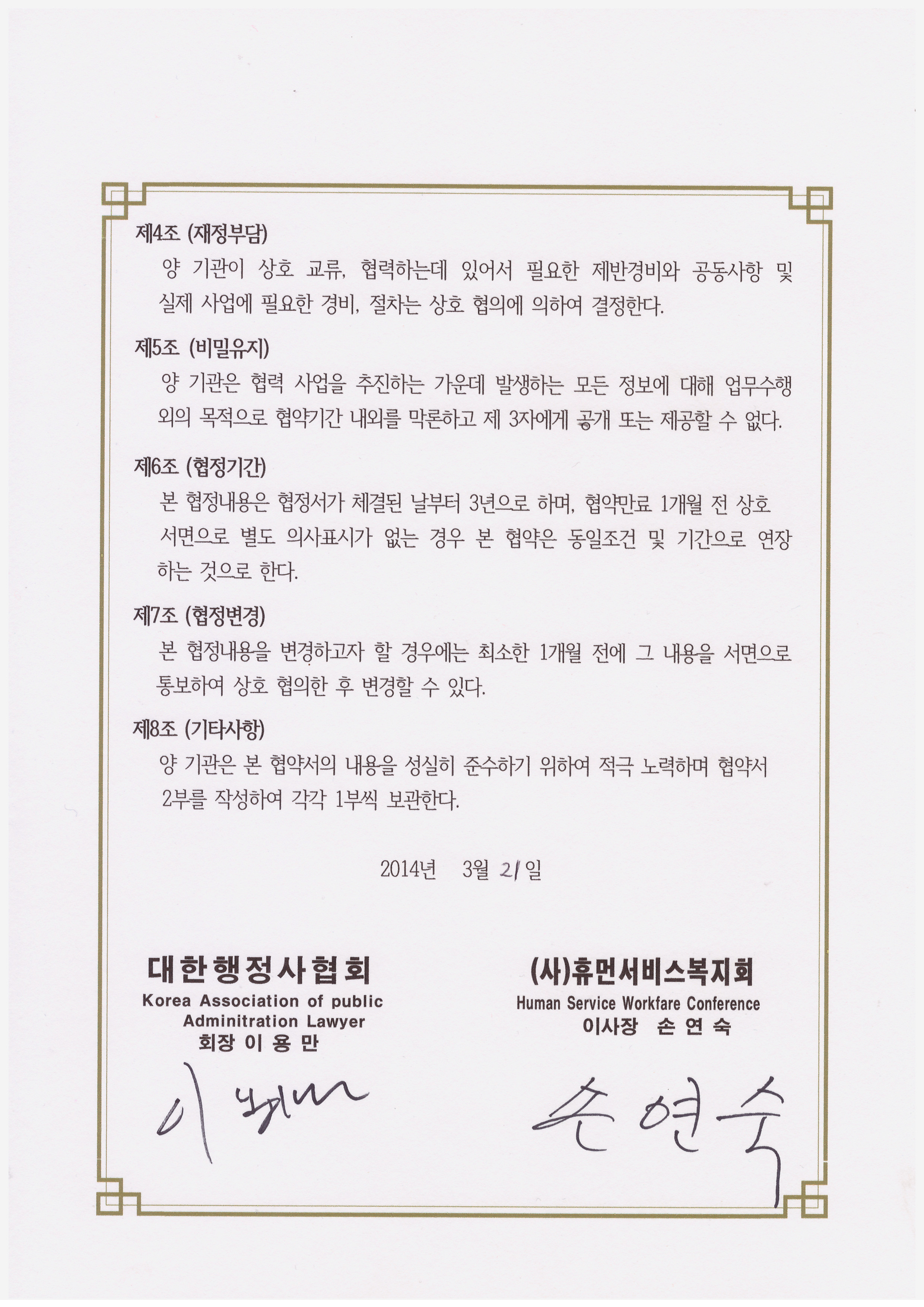 | 53 | (사)휴먼서비스복지회-비앤비케이 MOU | (사)휴먼서비스복지회 | 2014.04.16 | 1511 | |||