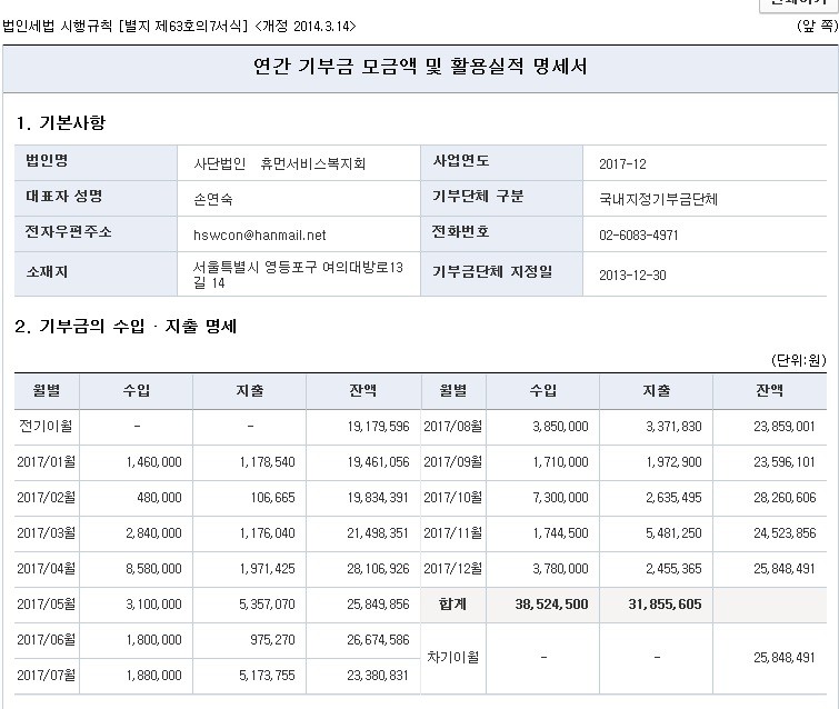 | » | 2017년 기부금모금액및 활용실적 명세서 | (사)휴먼서비스복지회 | 2018.04.03 | 26697 | |||