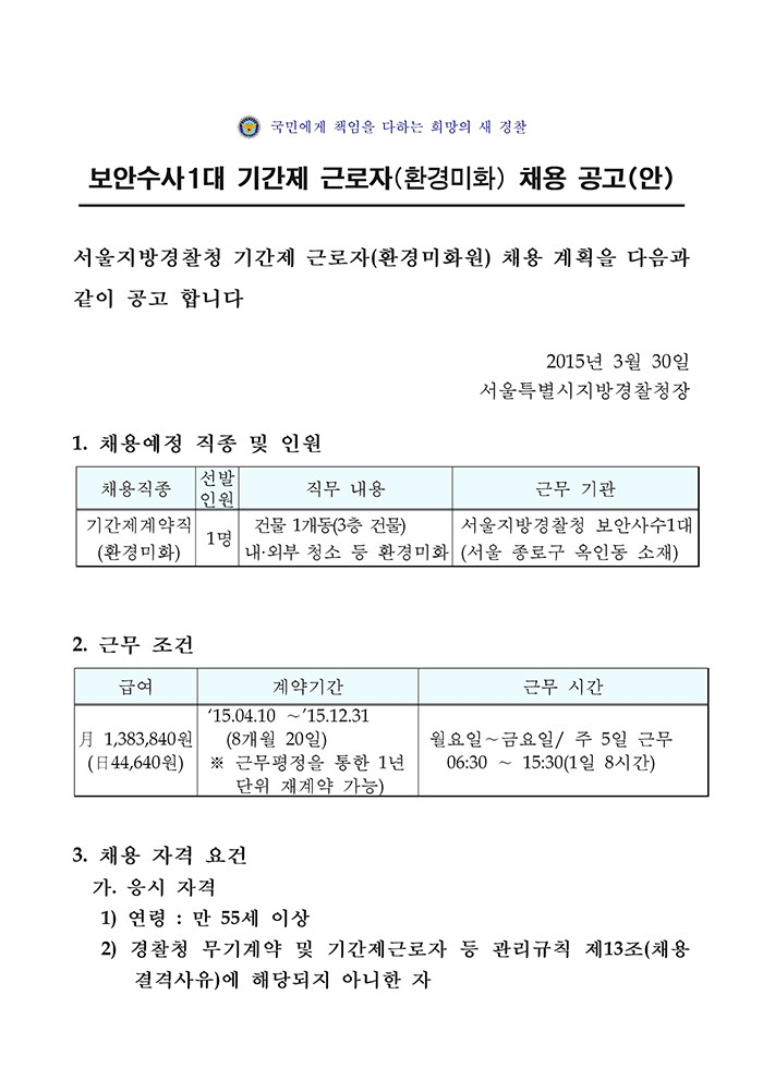 보안수사대 기간제 근로자 채용 공고 [3.30-4.8]
